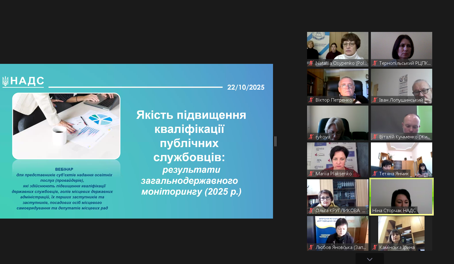 22 жовтня 2025 року Тернопільський регіональний центр підвищення кваліфікації долучився до вебінару «Якість підвищення кваліфікації публічних службовців: результати загальнодержавного моніторингу (2025 р.)»