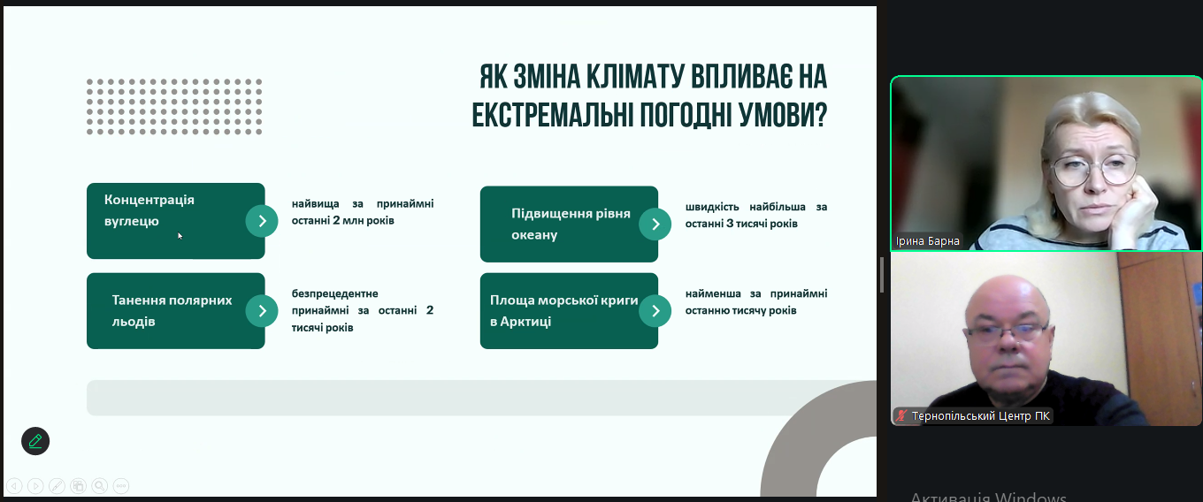 13 та 14 листопада 2025 року проведено онлайн навчання за спеціальною короткостроковою програмою підвищення кваліфікації для працівників органів державної влади та місцевого самоврядування на тему: «Глобальна зміна клімату. Кліматична політика України в контексті Європейського зеленого курсу»