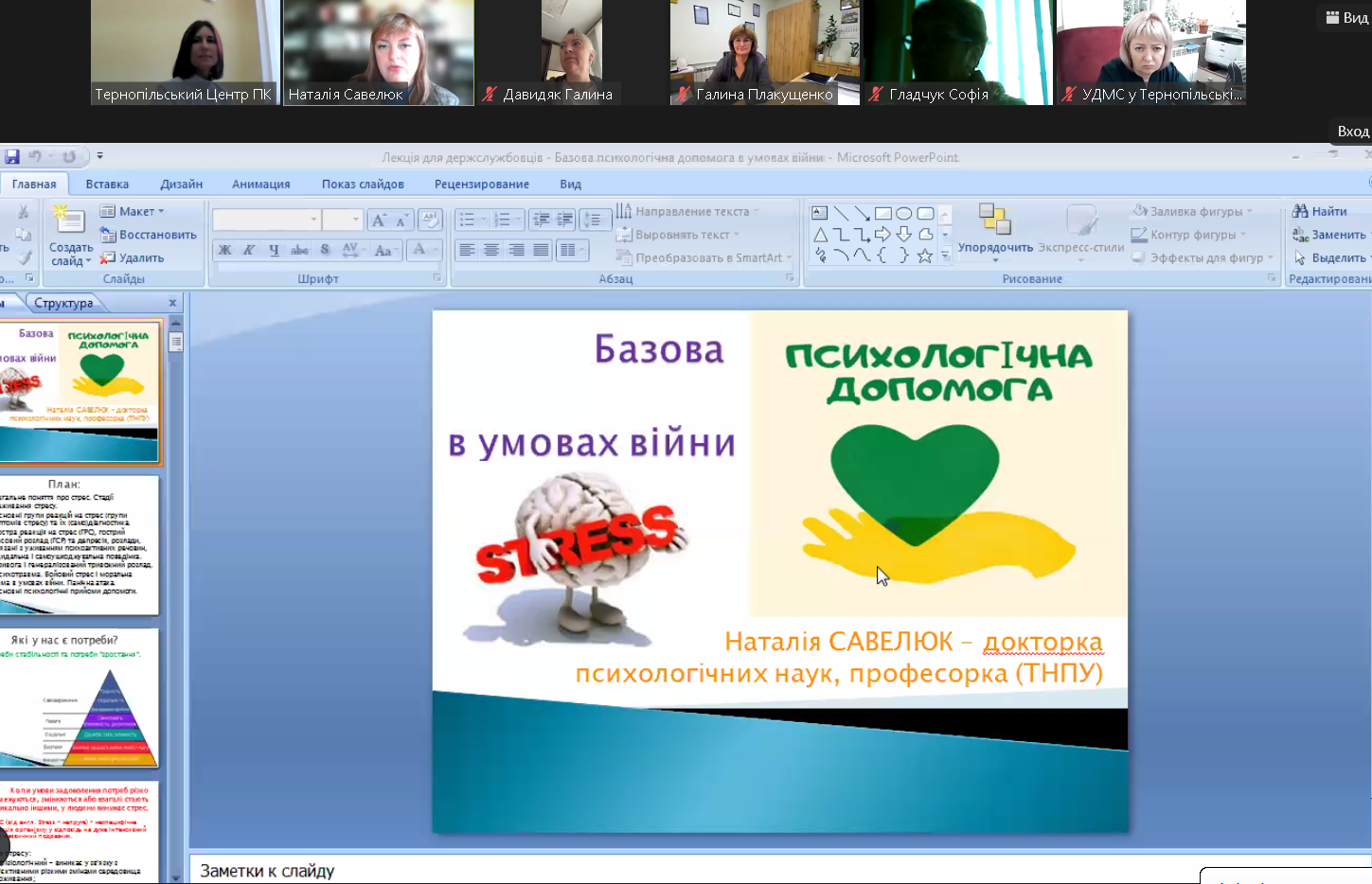 15-17 вересня 2025 р. відбулося онлайн – навчання в режимі реального часу для державних службовців, які займають посади державної служби категорій „Б” і „В” Управління Державної міграційної служби України в Тернопільській області за загальною короткостроковою програмою „Психологічна підтримка та адаптація персоналу у період воєнного стану та повоєнний час”