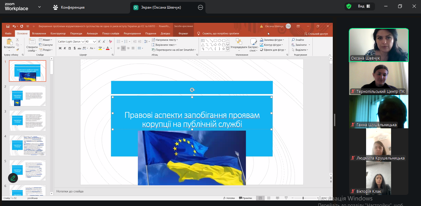 25-26 вересня 2025 року відбулося онлайн-навчання для державних службовців, які займають посади державної служби категорій „Б” і „В” Управління Державної міграційної служби України в Тернопільській області за загальною короткостроковою програмою „Актуальні питання реалізації чинного законодавства з питань запобігання корупції”