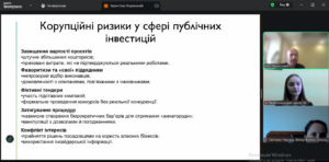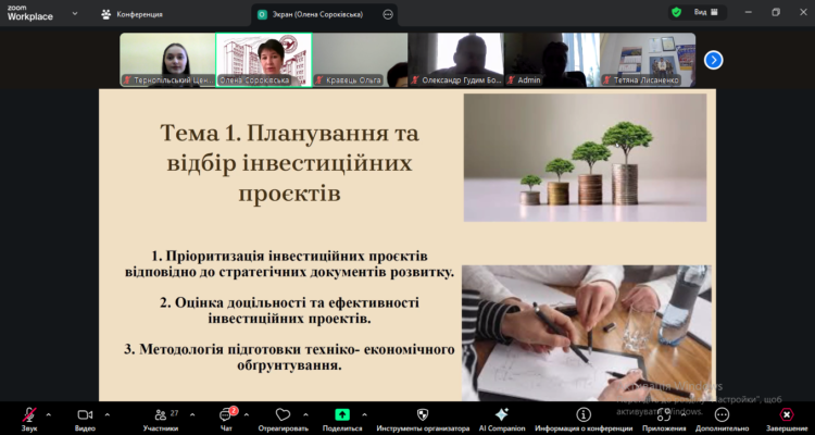 Мета семінару – підвищення рівня професійної компетентності публічних службовців щодо ефективного управління публічними інвестиціями, планування, реалізації та моніторингу інвестиційних проєктів, залучення фінансування та використання сучасних інструментів інвестиційного менеджменту.