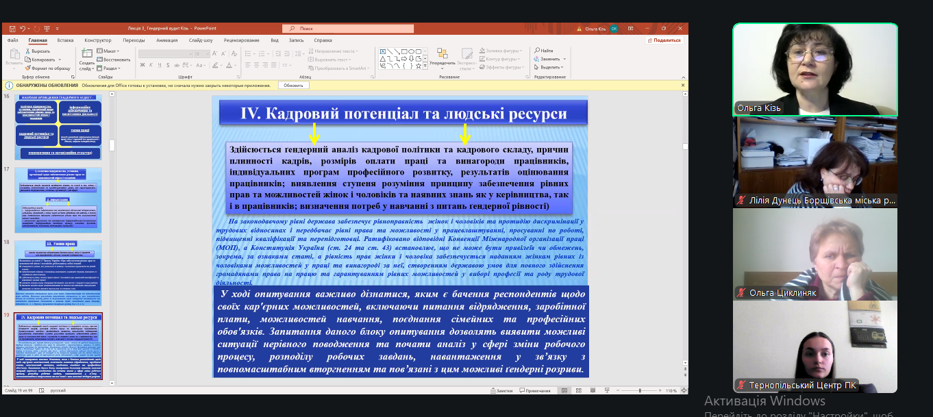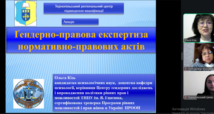 Кізь Ольга Богданівна – кандидатка психологічних наук, доцентка кафедри психології, керівниця Центру ґендерних досліджень та впровадження політики рівних прав і можливостей Тернопільського національного педагогічного університету ім. В.Гнатюка, тренерка Програми рівних можливостей та прав жінок в Україні ПРООН.