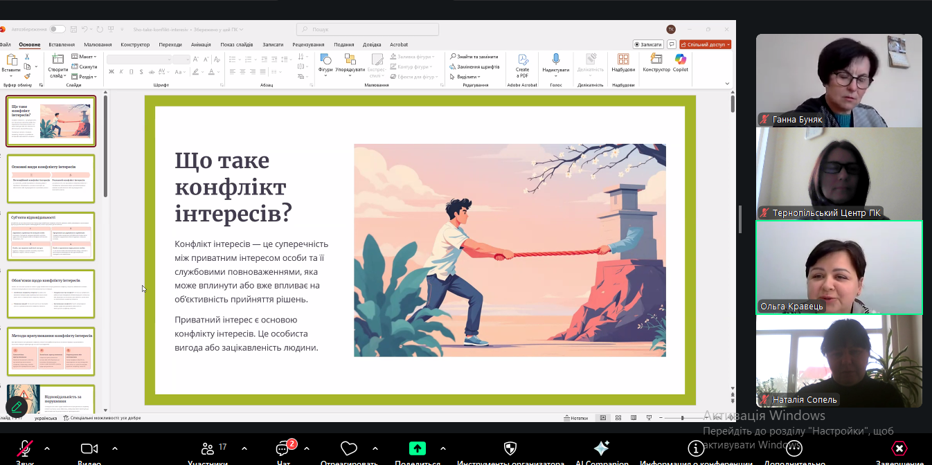 Кравець Ольга Ігорівна – головний спеціаліст сектору з питань запобігання та виявлення корупції Тернопільської обласної військової адміністрації;
