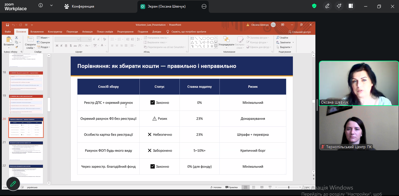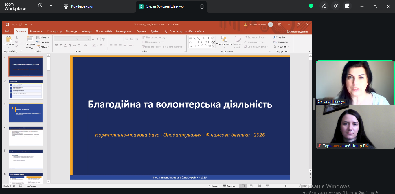 Метою семінару було формування професійних компетентностей державних службовців та посадових осіб місцевого самоврядування щодо співпраці та підтримки благодійної та волонтерської діяльності в умовах невизначеності.