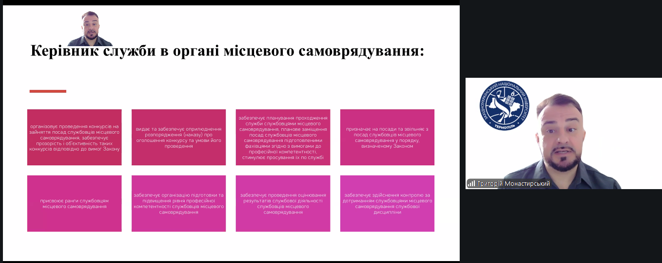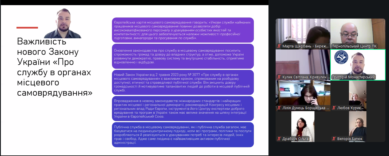 В ході семінару слухачі поповнили знання з найактуальніших питань, які стосуються правового регулювання служби в органах місцевого самоврядування, а також отримали кваліфіковані відповіді на запитання.