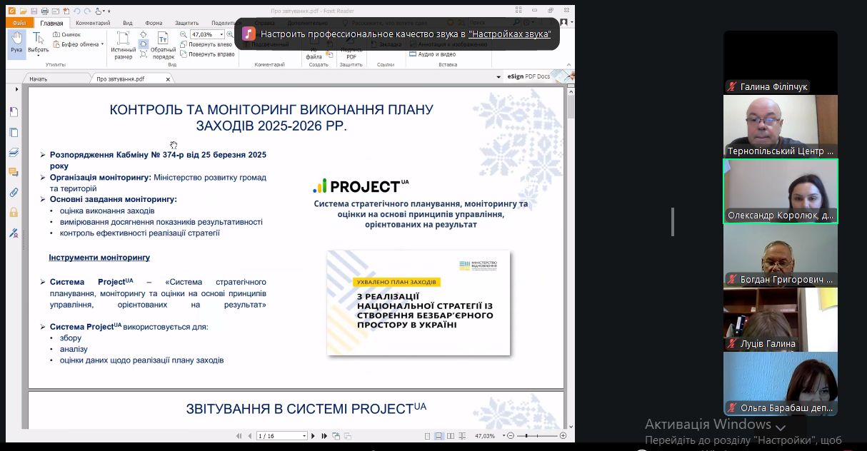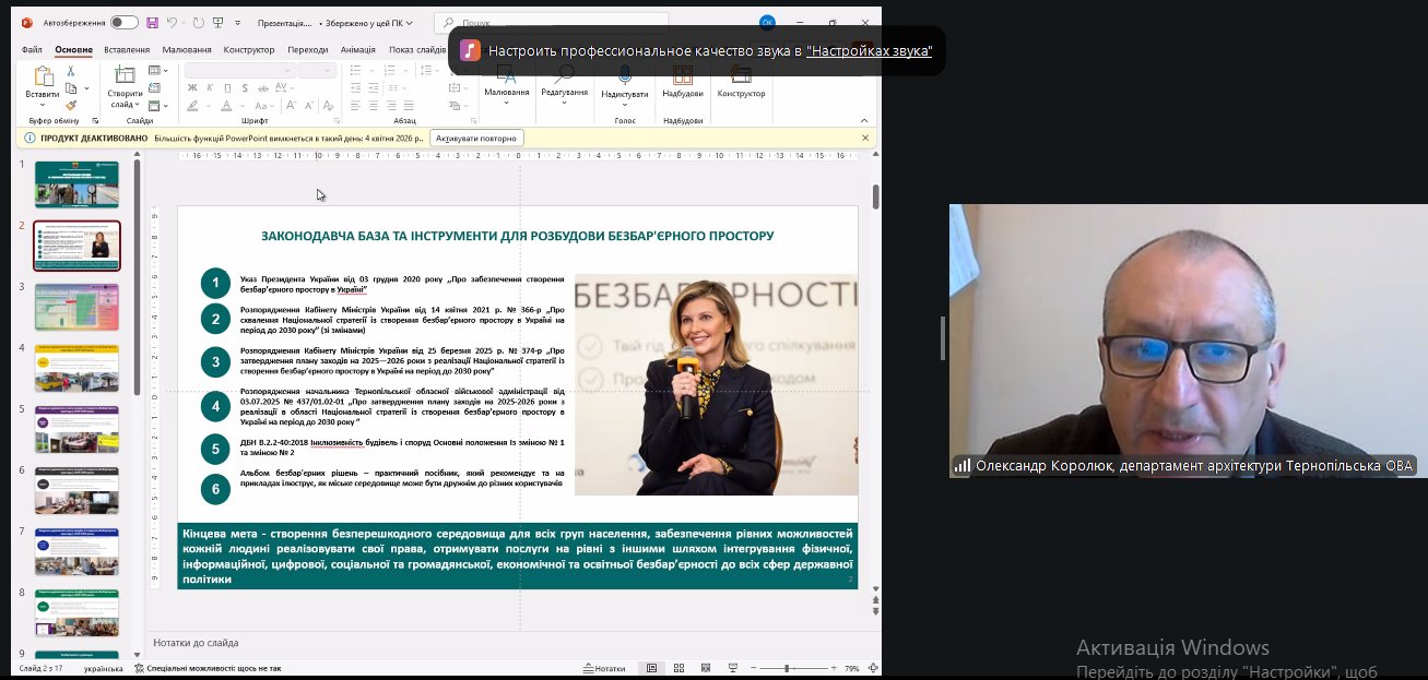 - ролі місцевої влади та громадськості у формуванні політики і технологій забезпечення безбар’єрності;