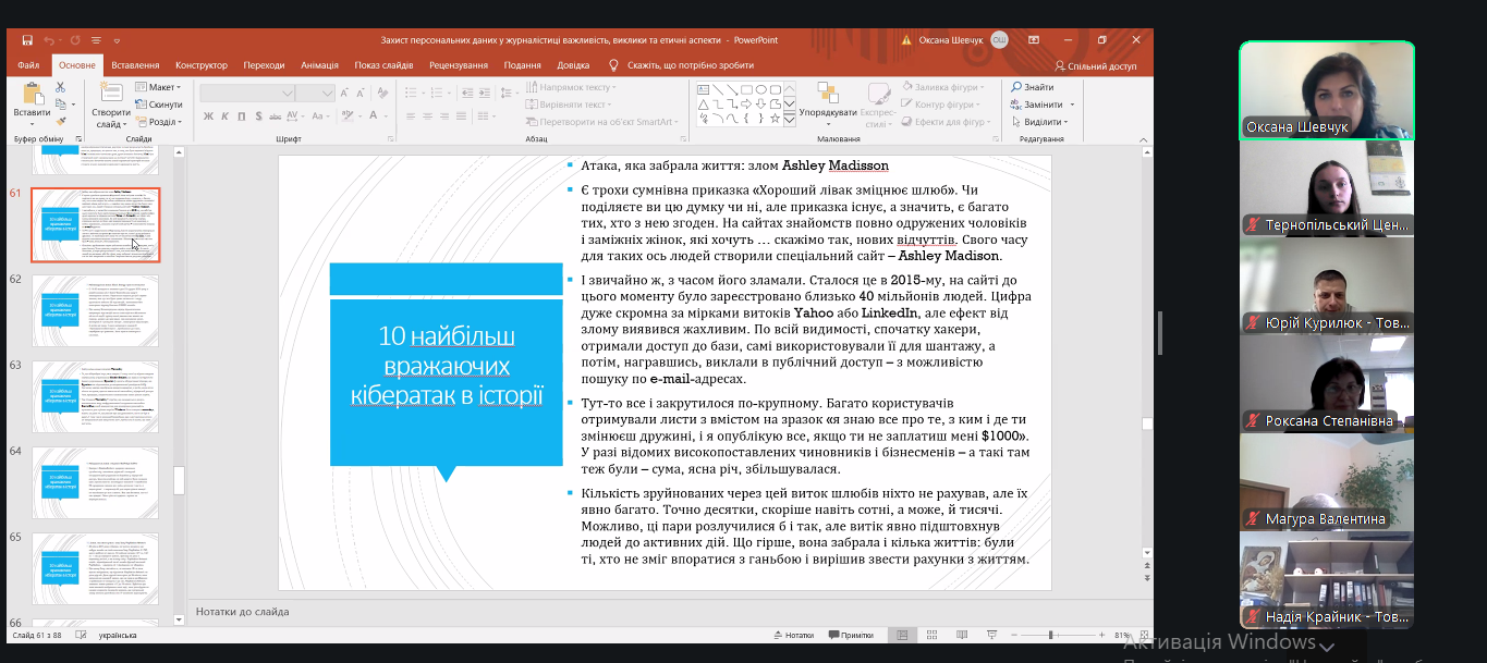 Шевчук Оксана Романівна – кандидат юридичних наук, доцент кафедри адміністративного права та судочинства Західноукраїнського національного університету.